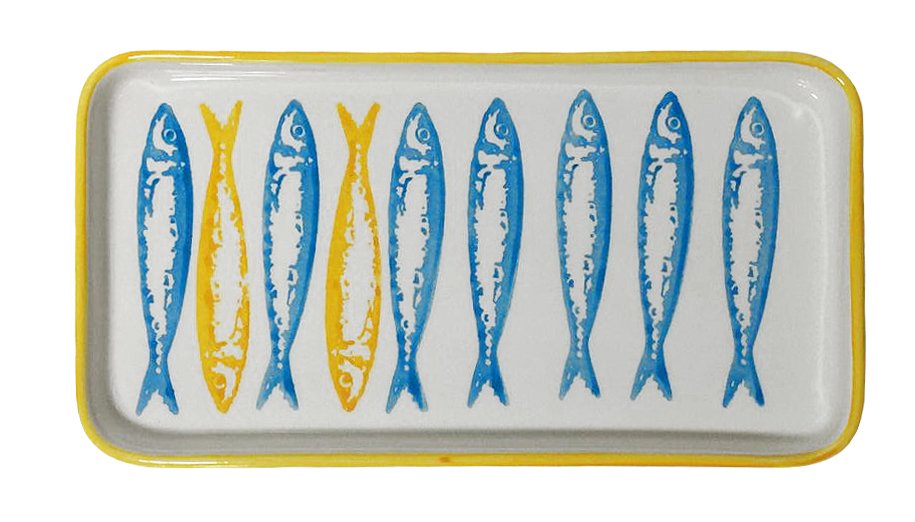 Travessa Pequena Sardinha Azul Filamento Amarelo